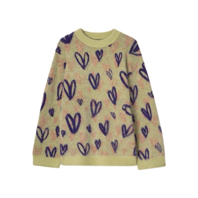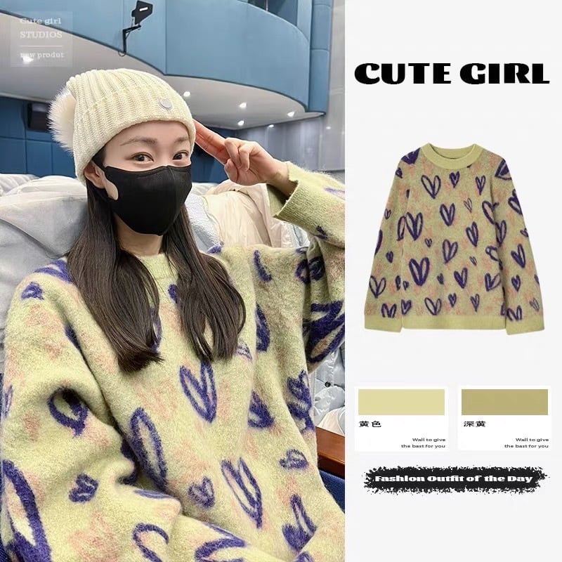 一際目を惹く可愛らしいハート柄のニットセーターです。