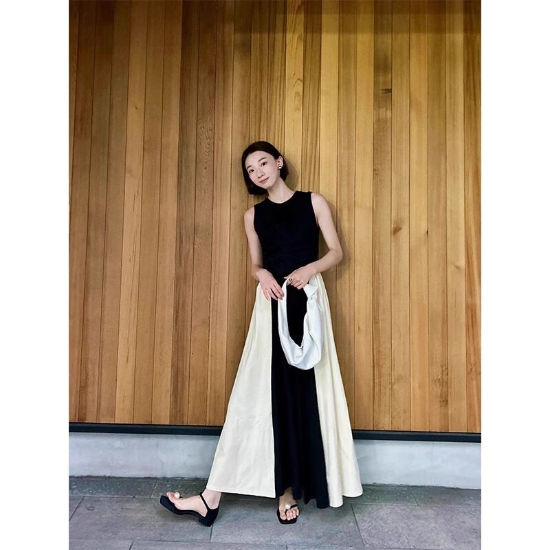 バイカラーノースリーブワンピース コントラストカラー ロングワンピース ノースリーブワンピース ワンピース ドレス レディース 可愛い オシャレ a5041